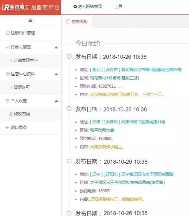 都市电工一站式电工服务平台,是在经济发展新常态的市场背景下,通过资源整合实现产业聚合,利用互联网+电工线下服务相结合的模式,通过对平台注册电工的专业技能细分、服务标准的培训、服务规范管理、通过线下服务团队集约化实现规模化的方式、利用平台化的信息管理工具,将电工与用户直接对接起来,打破现有电工行业服务资源不对称的市场格局,为客户降低用工成本、提高服务效率、解决电工服务行业售后服务滞后的顽疾,开辟了新的电工服务模式。